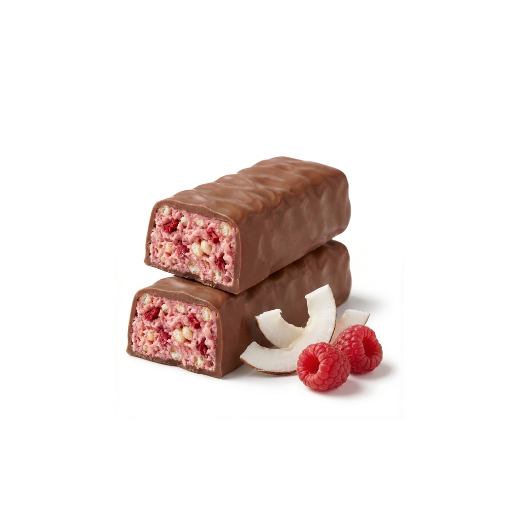 Lahodná kombinace šťavnatých malin a jemného kokosu obalená v mléčné čokoládě s minimem cukru potěší všechny milovníky sladkého, kteří nechtějí dělat kompromisy mezi chutí a výživou. Dopřejte si chutné potěšení bez výčitek a mějte vždy po ruce praktickou svačinku, která vás zasytí, dodá energii a uspokojí vaši chuť na sladké.